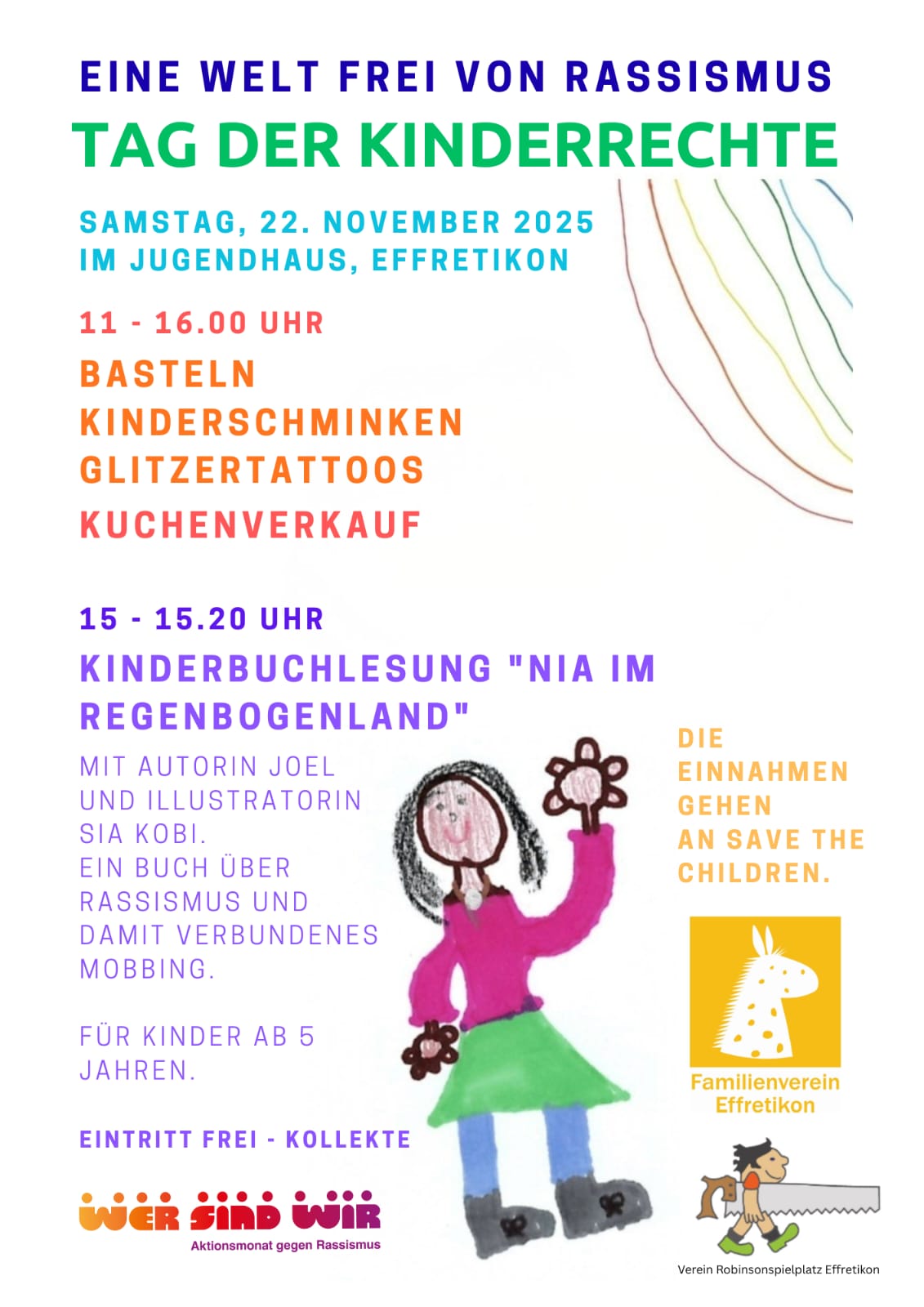 Auch dieses Jahr sind wir wieder vor dem Jugendhaus beim Märtplatz im Einsatz für die Rechte der Kinder. Wir sammeln für „Save the children“ indem wir Kuchen und andere feine Sachen verkaufen, Tiere aus Karton basteln, Gesichter schminken und Arme mit Tatoos verzieren.