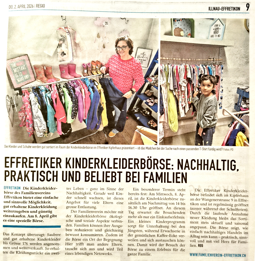 Mittwoch, 8. April: Kleiderbörse mit Kinderprogramm